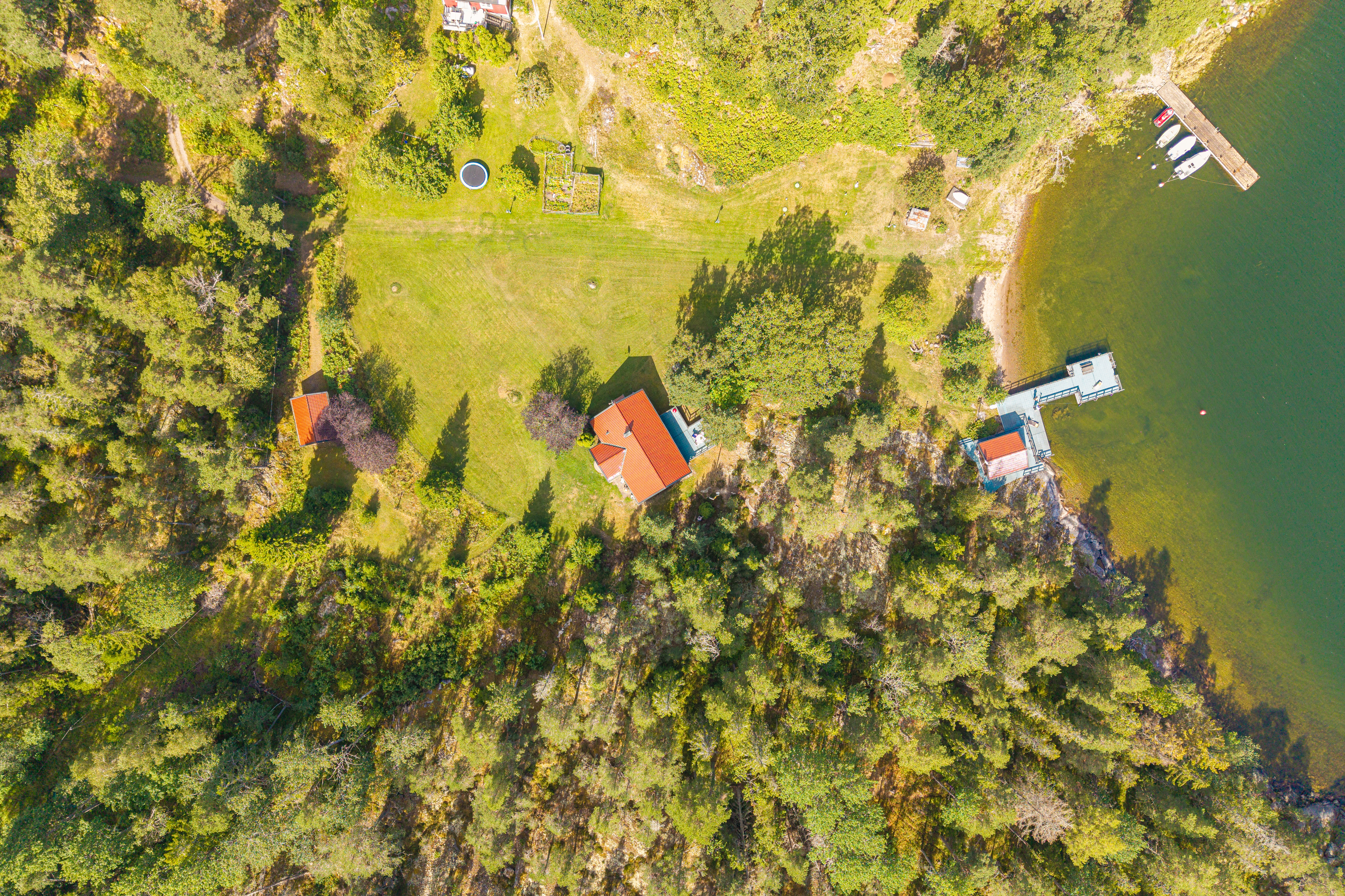 Med hela 3,1 hektar mark finns gott om utrymme för både avskildhet och aktiviteter. Terrängen är varierad med öppna ytor, klippor och skogspartier som tillsammans skapar en levande miljö. Strandlinjen ger en naturlig kontakt med havet och en självklar utgångspunkt för båtliv.